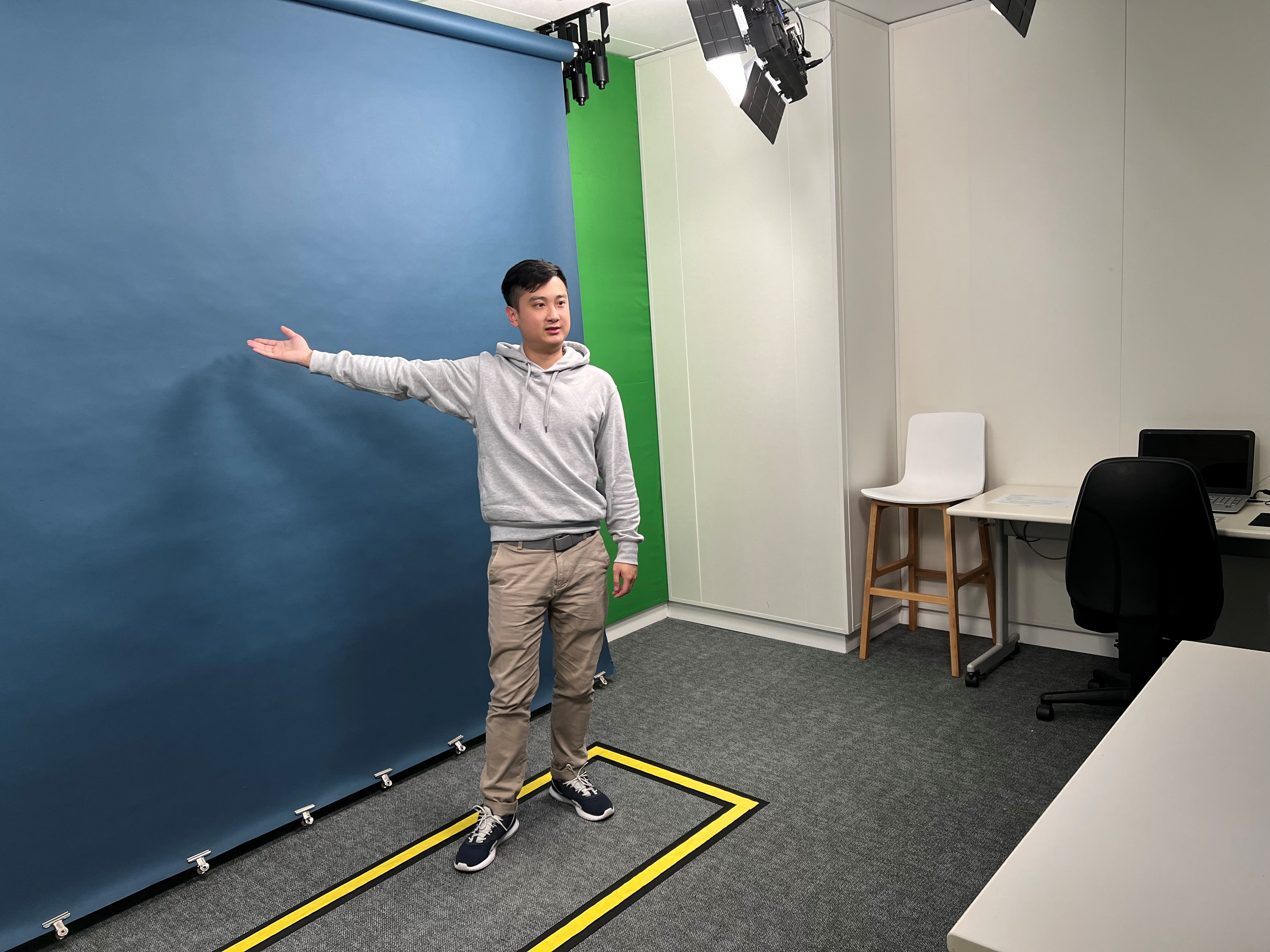 The settings of the studio are user-friendly and ready to support product demonstration, presentation with PowerPoint projection, speech rehearsal, small scale interview, etc.