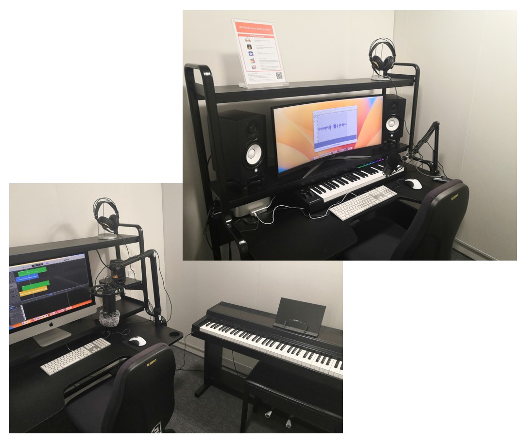 The Sound Recording Studio is a self-service studio featuring professional sound recording equipment and digital audio workstation (DAW) software for sound production, audio or video dubbing, recording of narrations for PowerPoint, etc.