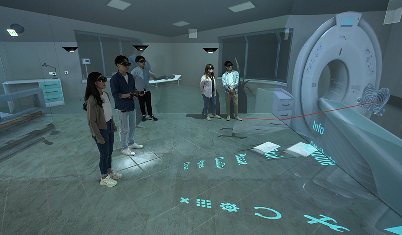 A 6-side immersive automated virtual environment for experience of interactive VR technology, testing of user CAVE program, review of BIM and DICOM model